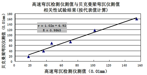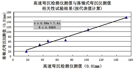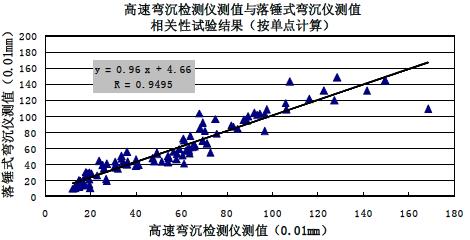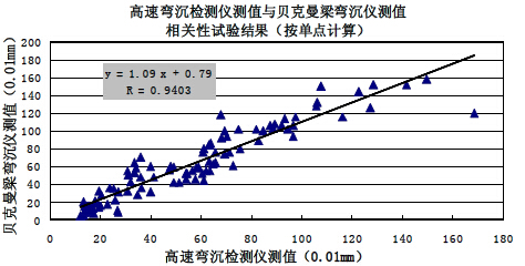 “高速激光彎沉檢測儀”采用多普勒激光傳感器實(shí)時(shí)檢測出路面不同測點(diǎn)的變形速度,采用歐拉-伯努利彈性力學(xué)模型計(jì)算,獲得最終結(jié)果。試驗(yàn)結(jié)果與目前常用的貝克曼梁法、FWD法有良好的相關(guān)性,完全可以用于工程檢測。 |